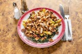 Boneless chunks of chicken sauteed with hot sausage, hot cherry peppers, potatoes, and fresh rosemary in white wine lemon sauce.